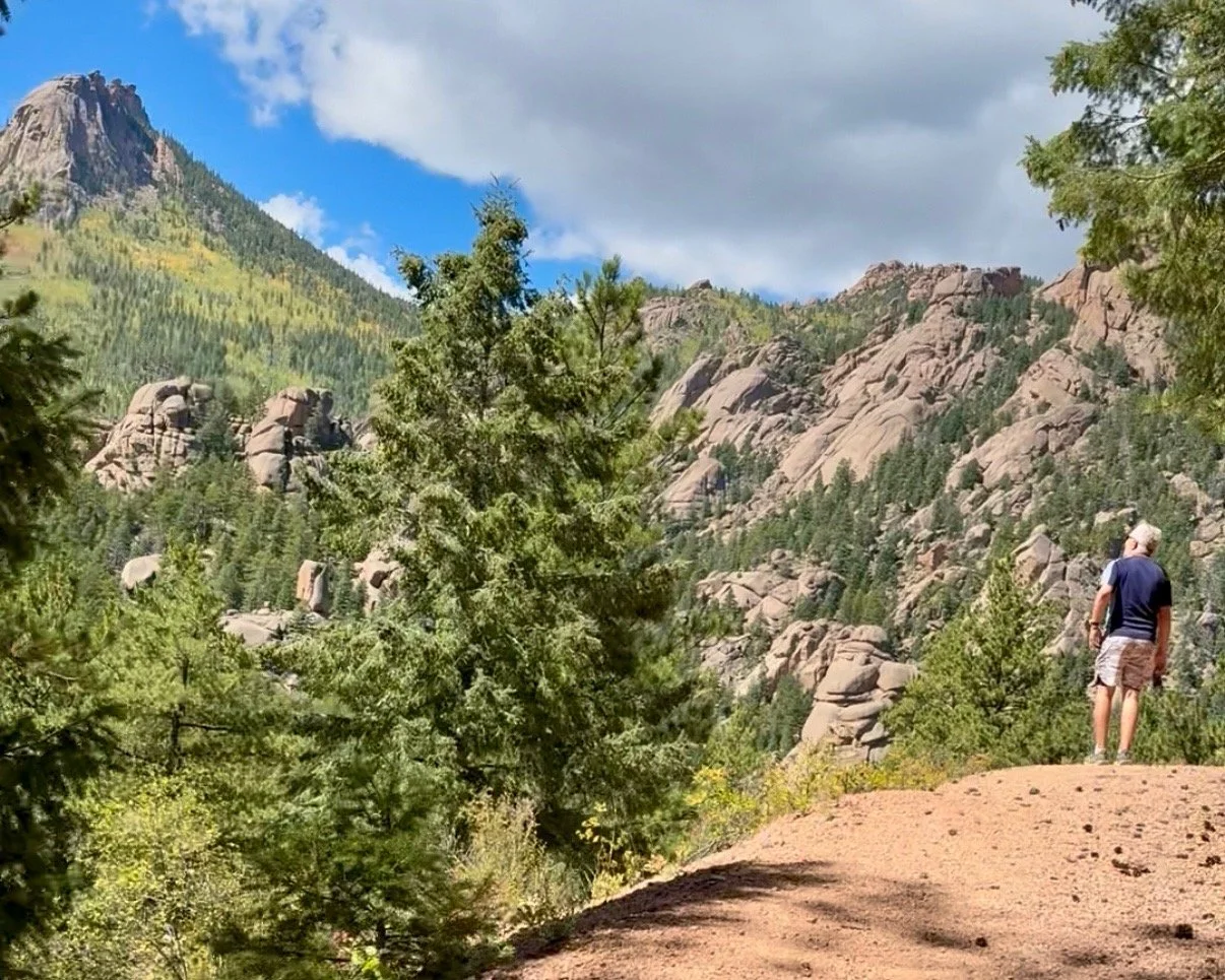 In the second part of the year, we focused on gaining lots of elevation to strengthen Andrea’s glutes & core, which got us out on some beautiful hikes, especially in the Fall, when the aspens were changing. The brilliantly yellow aspens we’re walking through below are found in the Lost Creek Wilderness— we could see the riot of color from our deck, at least 17 miles away.